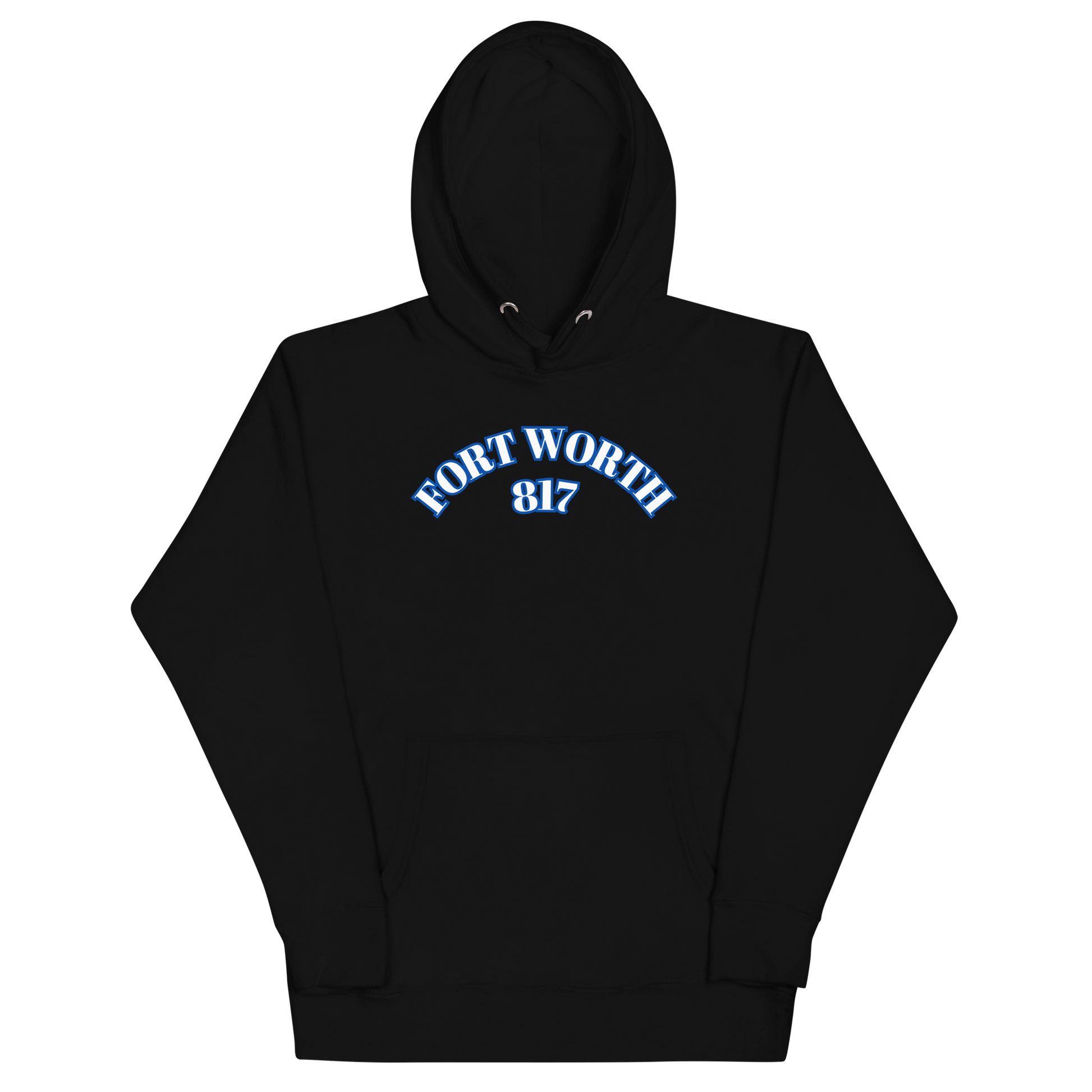 Fort Worth 817 WHT font BLU outline Unisex Hoodie